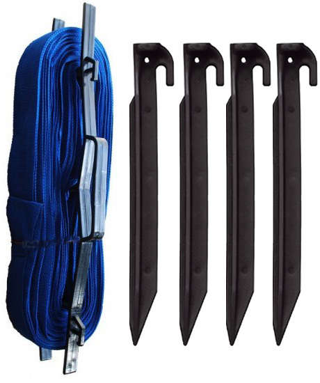 De Courtline wordt geïnstalleerd met elastisch bevestigde kunststof pinnen – geschikt voor zand of gazons.