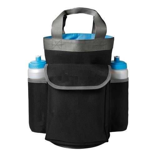 Kleur: zwart(onbedrukt). Voorzien van twee zijvakken en één voorvak met klittenband (één vak voor een spons, twee vakken voor een bidon/drinkfles). Exclusief bidons en spons.