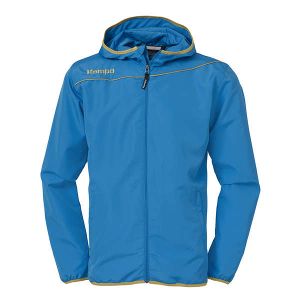 De Kempa Gold Presentatie Jasje bevat een Kempa borduurwerk op de borst en op de kapuchon. Tevens bevat het jasje een diagonale gouden streep. Het jasje is gemaakt van polyester. Ook bevat het jasje een Kempa CL label op de linker arm.