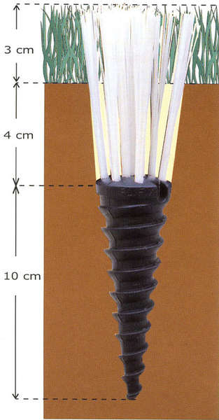 Das Plifix® Einmesshilfe Set besteht aus 25 Plifix®-Schrauben mit synthetischen Grasbüscheln.